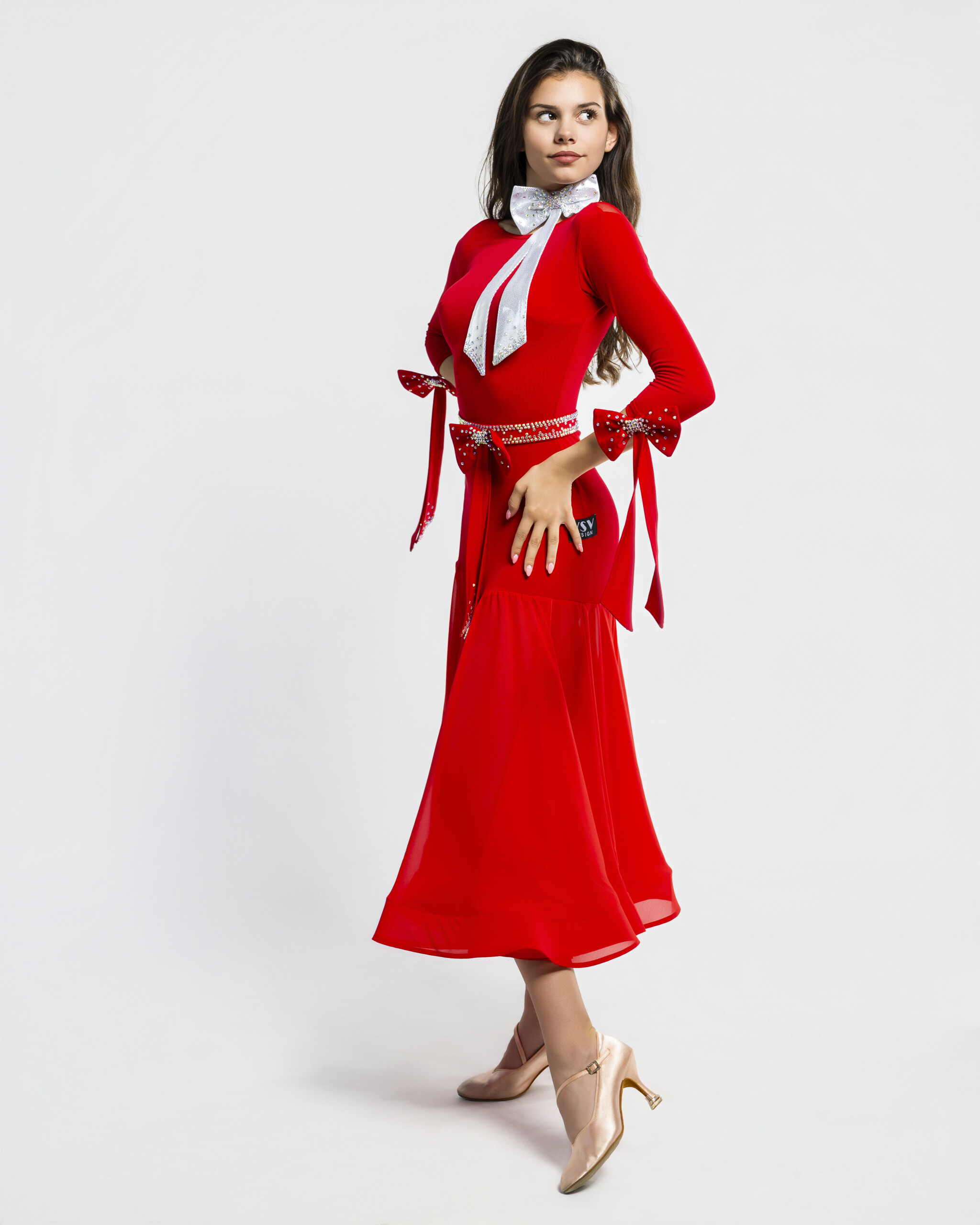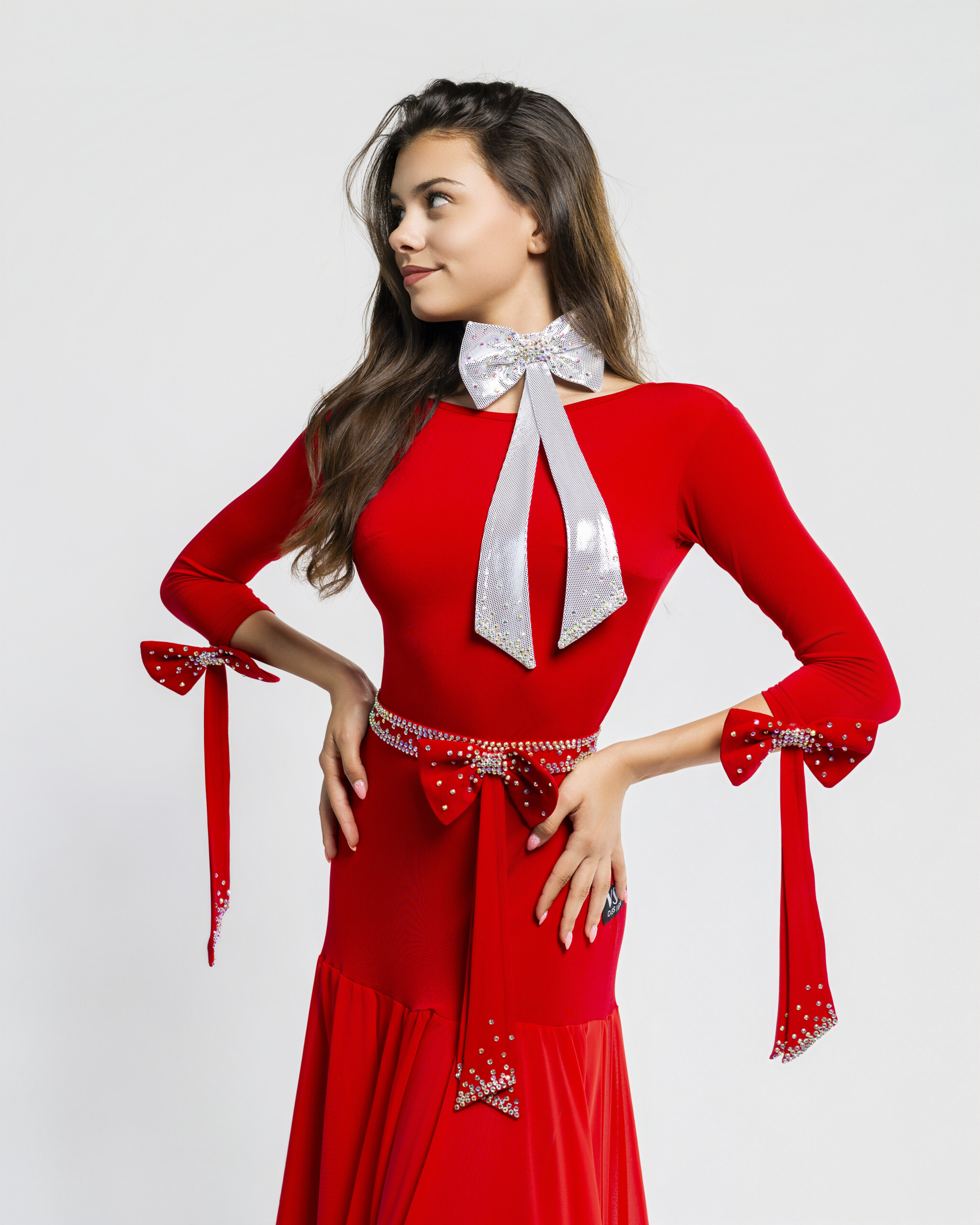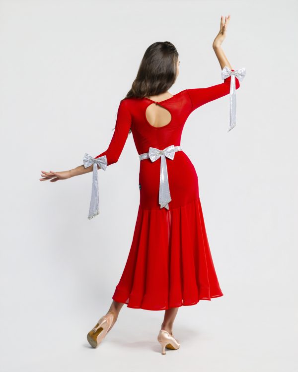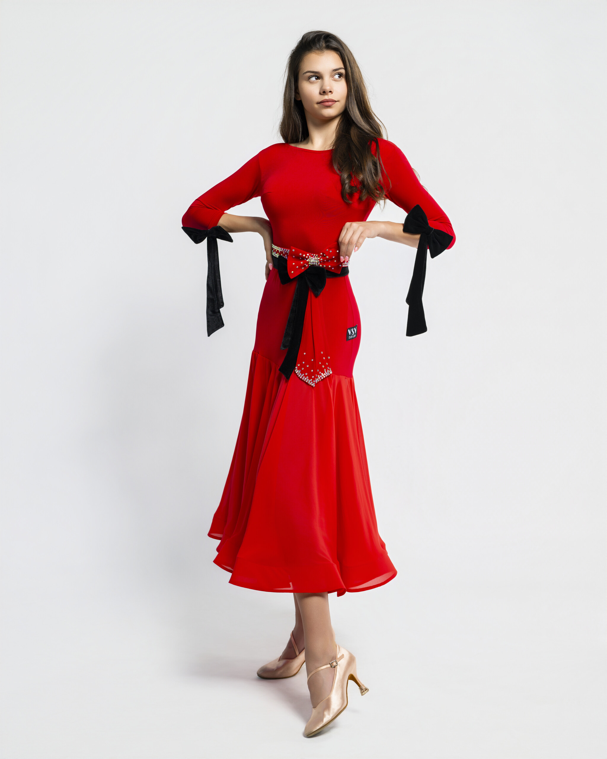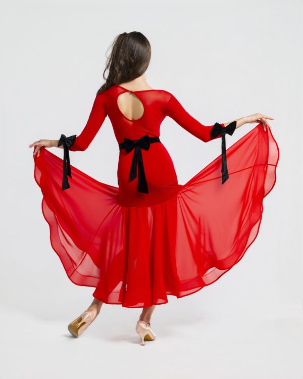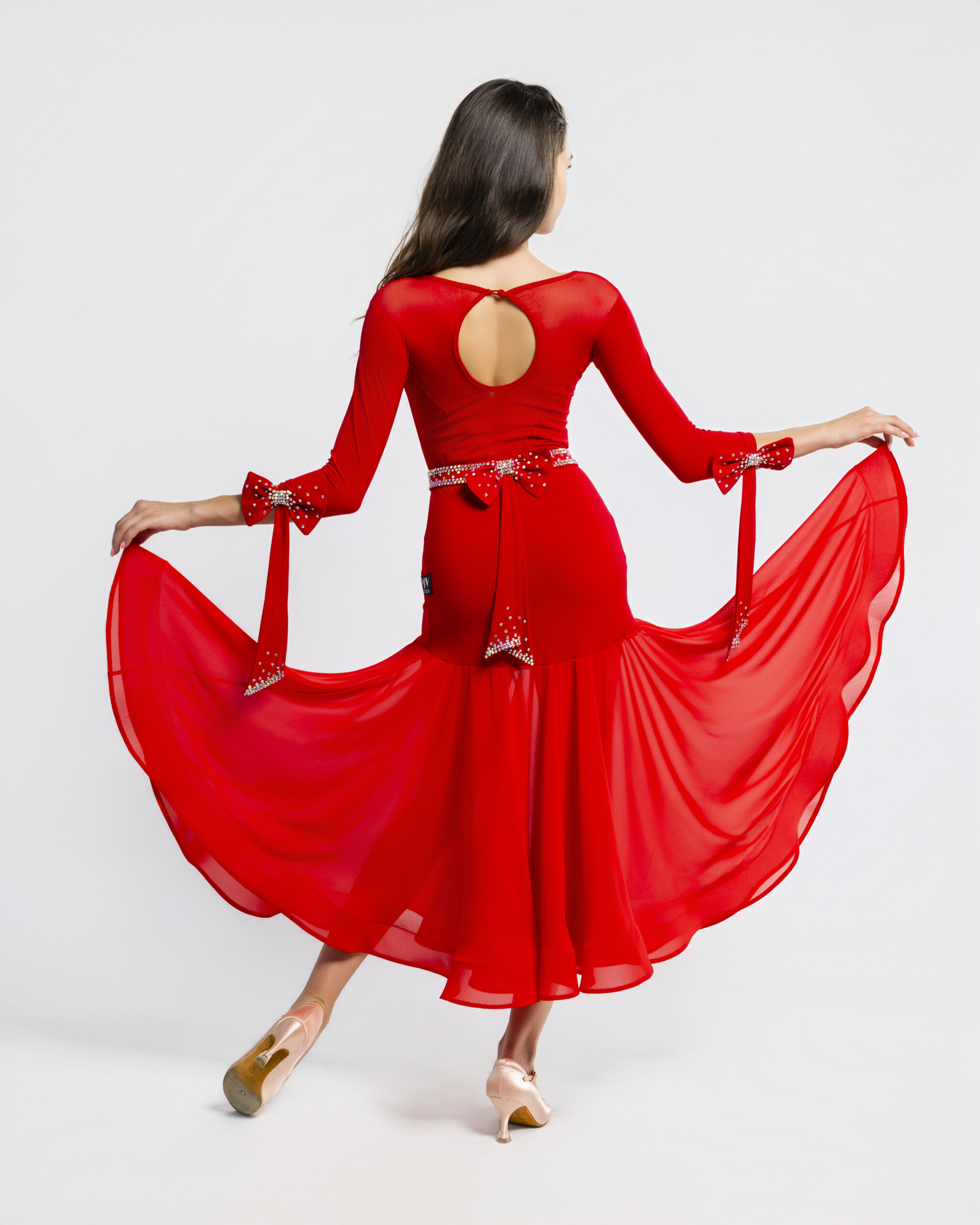 ✅ 1 robe de danse de salon – Une superbe robe de danse de salon classique en rouge, conçue pour l’élégance et la fluidité des mouvements.