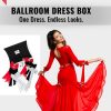 Cet ensemble exclusif vous permet de transformer votre look sans effort. Que vous souhaitiez adopter la beauté intemporelle du rouge classique ou rehausser votre style avec des accents blancs, noirs ou dorés, BALLROOM DRESS BOX s’adapte à vos performances !