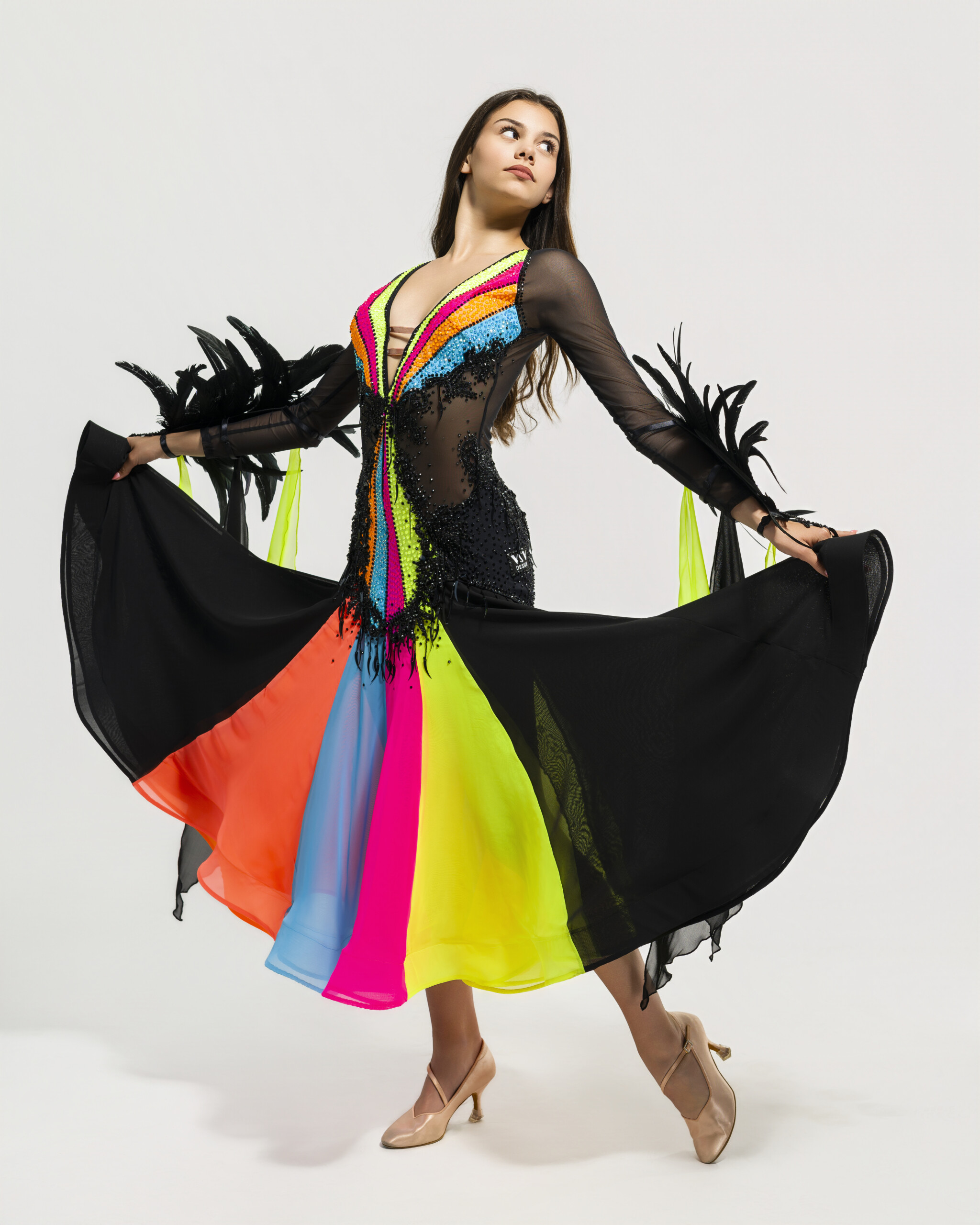 The asymmetrical or layered skirt flows with expressive energy, amplifying the impact of every step. Designed to enhance motion and rhythm, this dress performs with you – powerful, passionate, and precise.