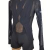 The design is executed with figure-flattering geometric shapes that strategically contour the physique, enhancing the athletic silhouette and adding a modern, dynamic edge to every movement. The sophisticated black color radiates uncompromising confidence and guarantees a memorable stage presence.