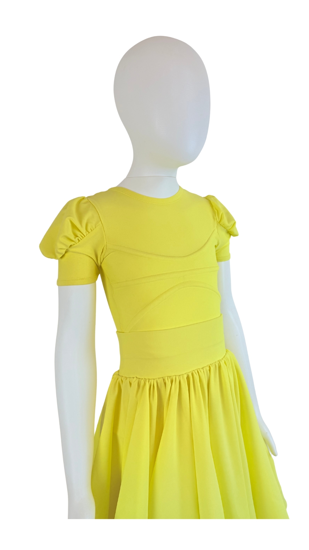 This elegant juvenile dress  combines comfort and style to make every little dancer shine on stage! Classic long sleeve dress pattern which give an elegant look on the stage!