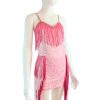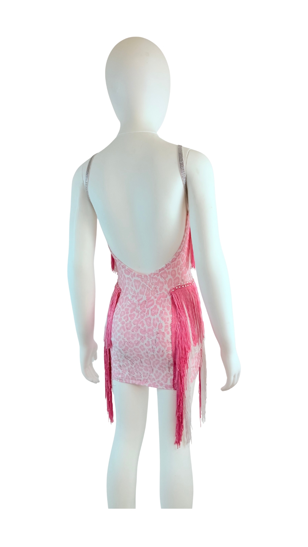 This stunning kids’ Latin dress is made to captivate with its sparkle and charm! Crafted from in a soft pink color, it catches the eye with every movement. The design features stylish fringe accents that add dynamism and a unique look, while the stone embellishments provide extra shine and elegance. A perfect choice for dance performances, stage appearances, or any special occasion!