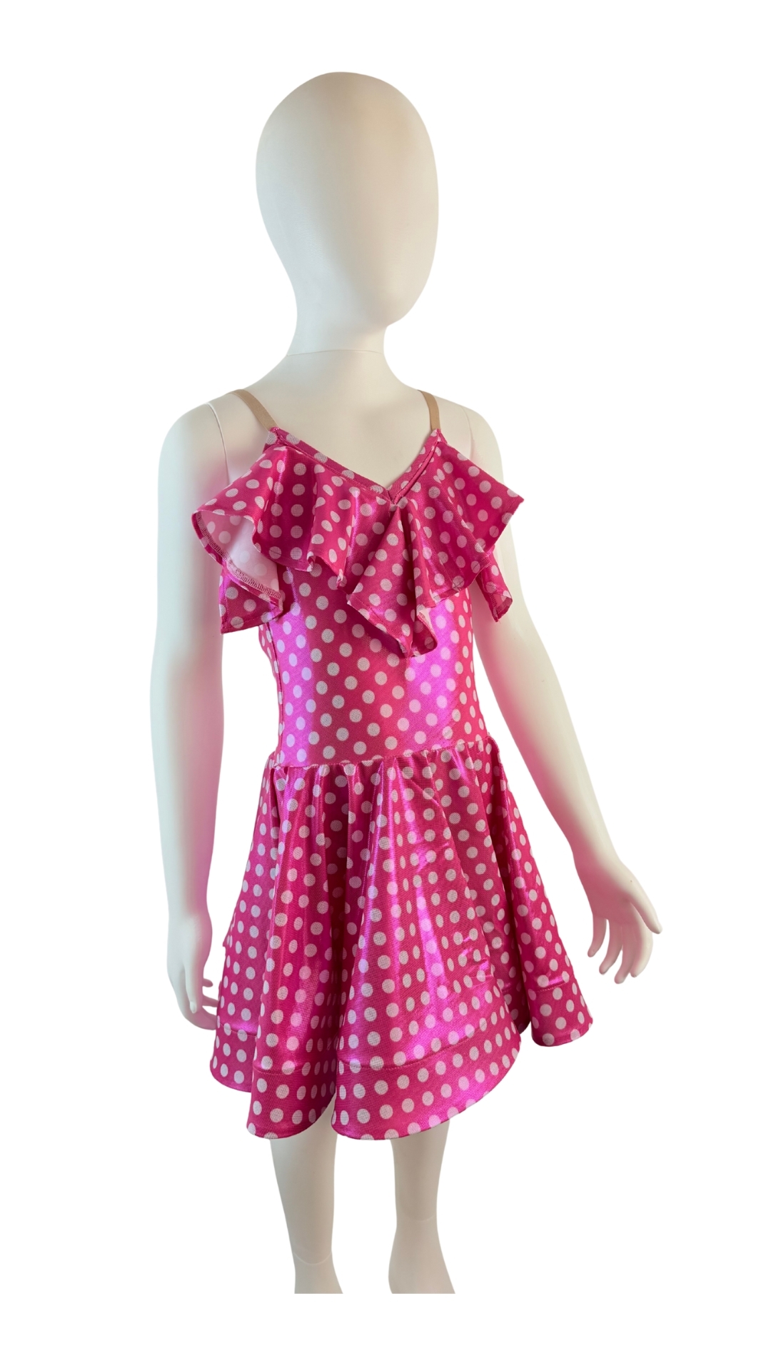 This hot pink dress is designed to capture every eye on stage. Crafted from a shiny fabric, it provides a stunning shimmer under the lights. The design features a flowing skirt with plenty of movement