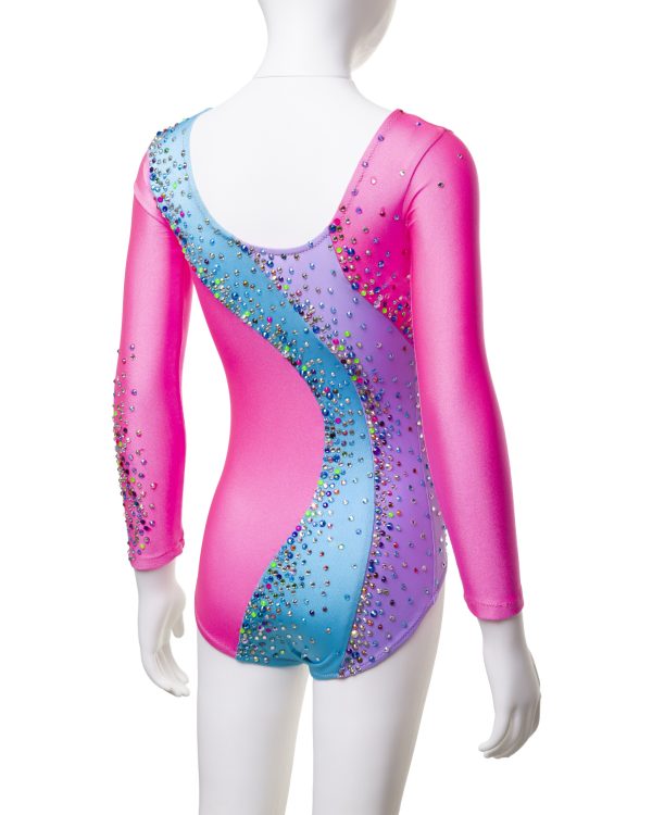 This exquisite leotard is designed for gymnasts who love to impress. Made from strechy fabric, it highlights every movement with refined shine, while the crystal embellishments enhance the effect and add extra radiance on stage!